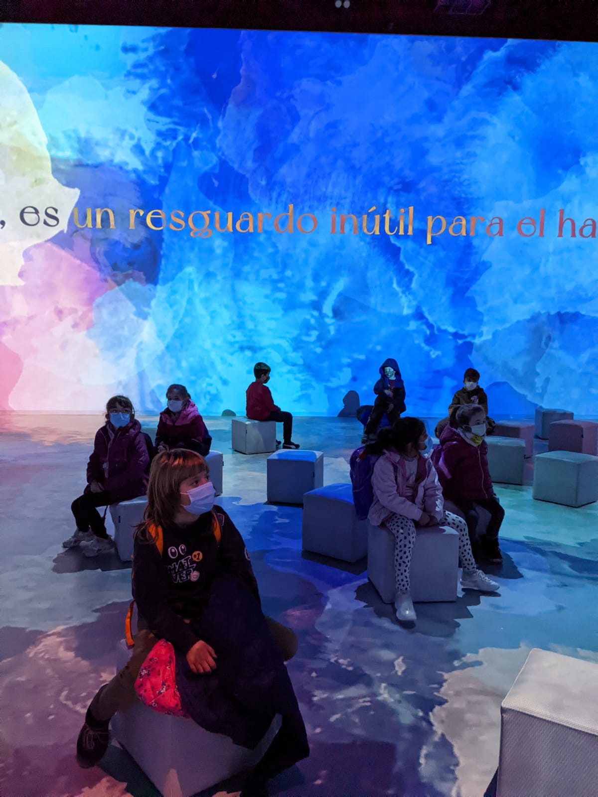 Els nens i nenes de segon vam anar la passada setmana a visitar una exposició sobre la vida i obra de Frida Kahlo. Quan llegiu això estareu pensant en un museu clàssic amb quadres i objectes de la Frida; res més lluny de la realitat. Es tractava d’un museu d’art i disseny digital. No hi havia ni un sol quadre. Es projectaven les imatges en les parets i a terra en forma de documental. Les imatges ens envoltaven i ens endinsaven als quadres de forma que ens feien partícips d’ells. Vam gaudir d’una experiència visual inigualable.
