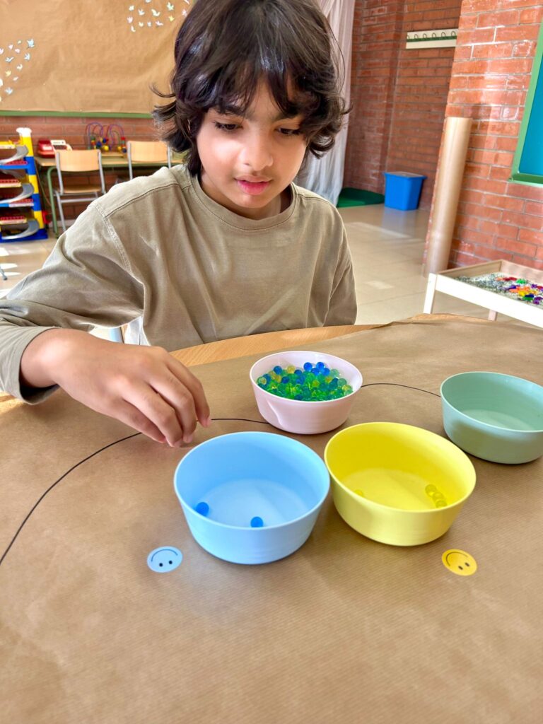 Nosaltres hem preparat 3 activitats: classificació per colors, creació de pilotes sensorials i experimentació amb aigua.