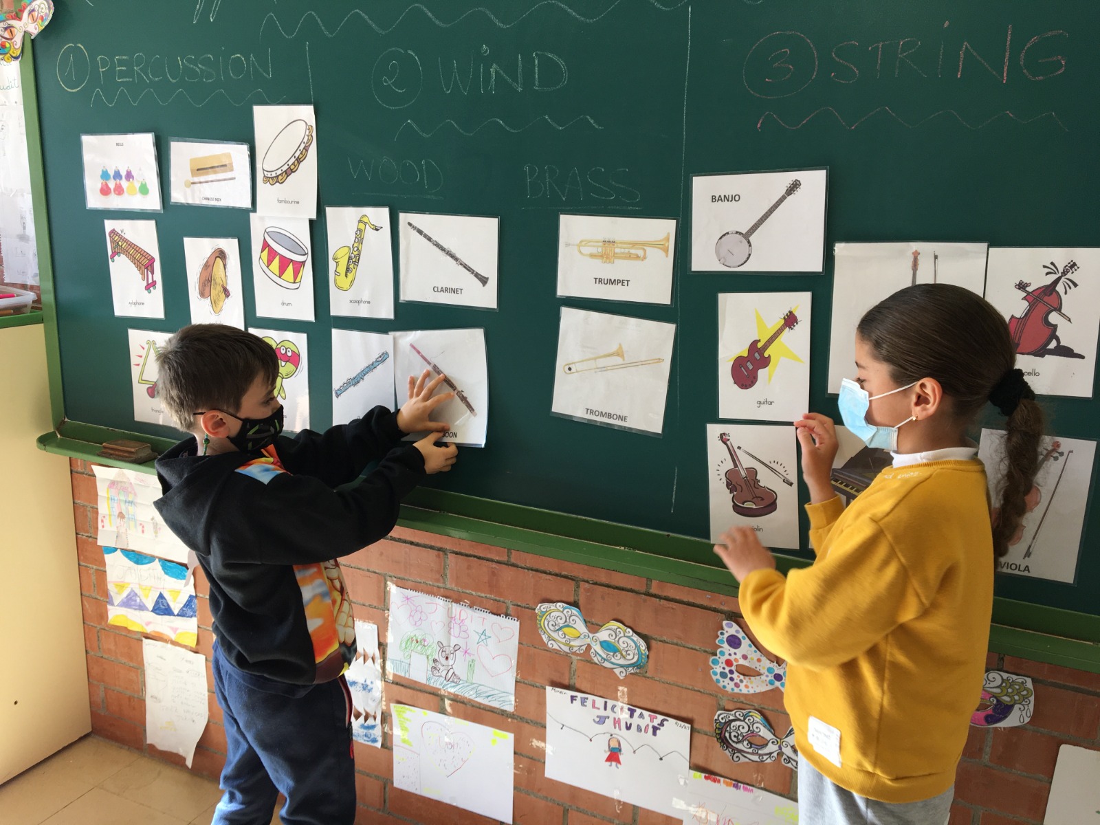 Els nens i les nenes de 3r hem treballat a música els instruments musicals i les seves respectives famílies en anglès. Hem conegut instruments que desconeixíem i hem gaudit molt fent servir les flashcards i elaborant un mural amb els nostres propis dibuixos dels instruments musicals.