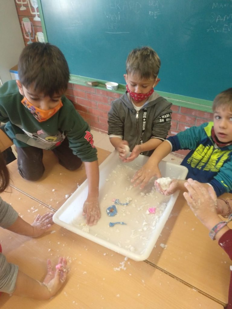 Ahir a la tarda l’aula de PRIMER va crear la seva pròpia neu amb la barreja de bicarbonat de sodi i aigua.