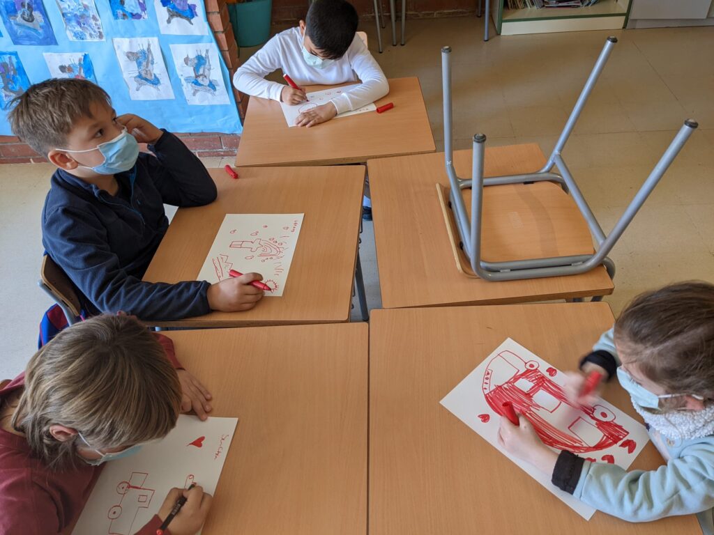 Als nens i nenes de segon aquesta setmana en plàstica ens han explicat un conte en anglès. El conte té com a protagonistes els colors. Es titula: The day the crayons quit. En ell els colors fan una protesta. Si voleu saber què els passa a cadascú dels colors us convidem a llegir-lo. Nosaltres hem treballat The red colour .