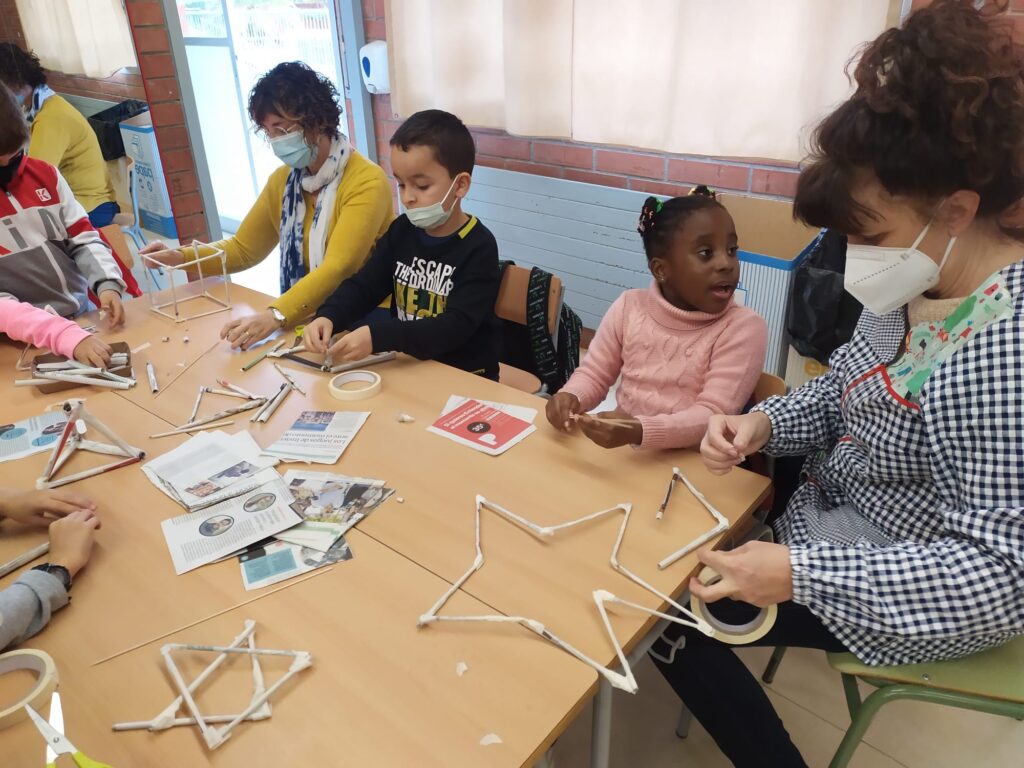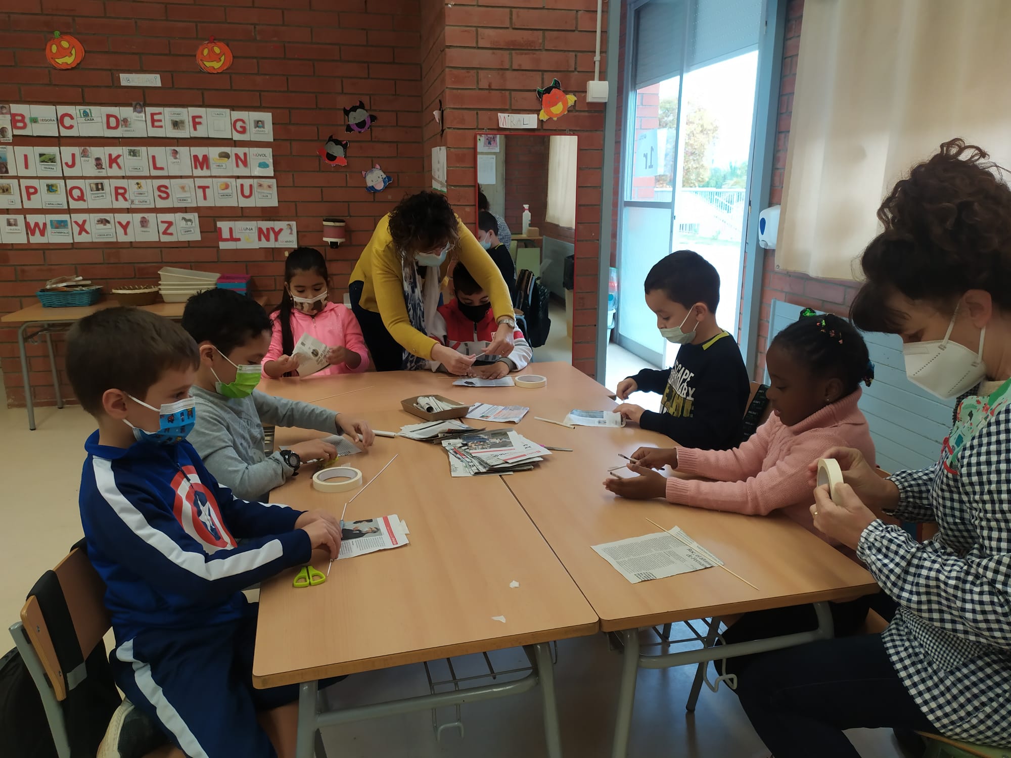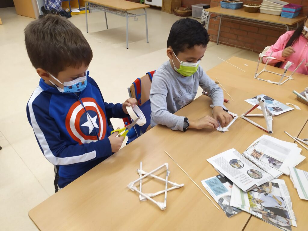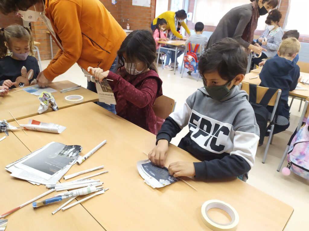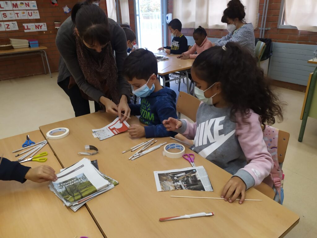 Els infants de PRIMER hem conegut, manipulat i creat a través d’un taller de Geodèsia. Nosaltres hem estat el matí creant les nostres pròpies representacions a partir de papers de diari, cinta adhesiva i un pal de fusta.