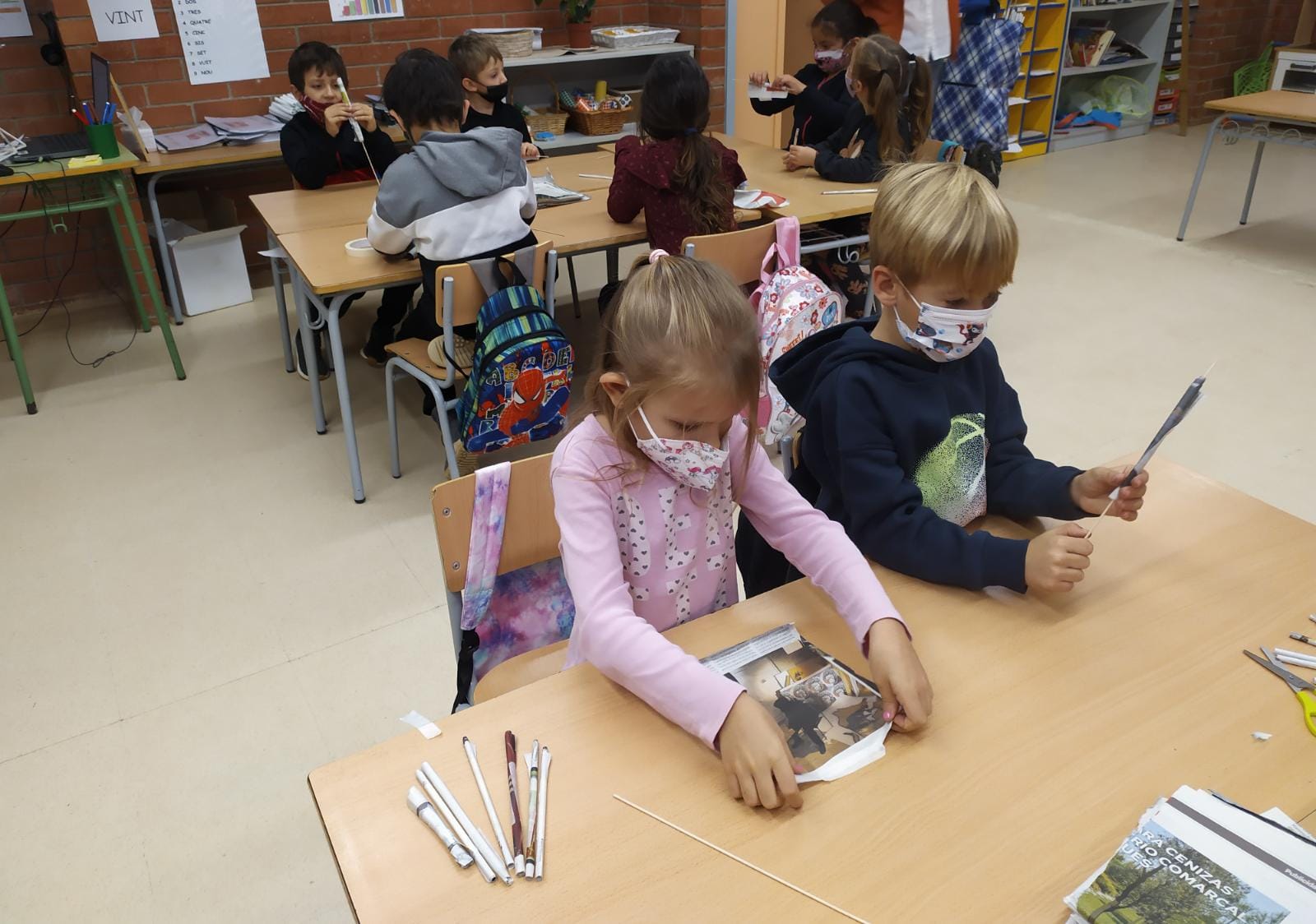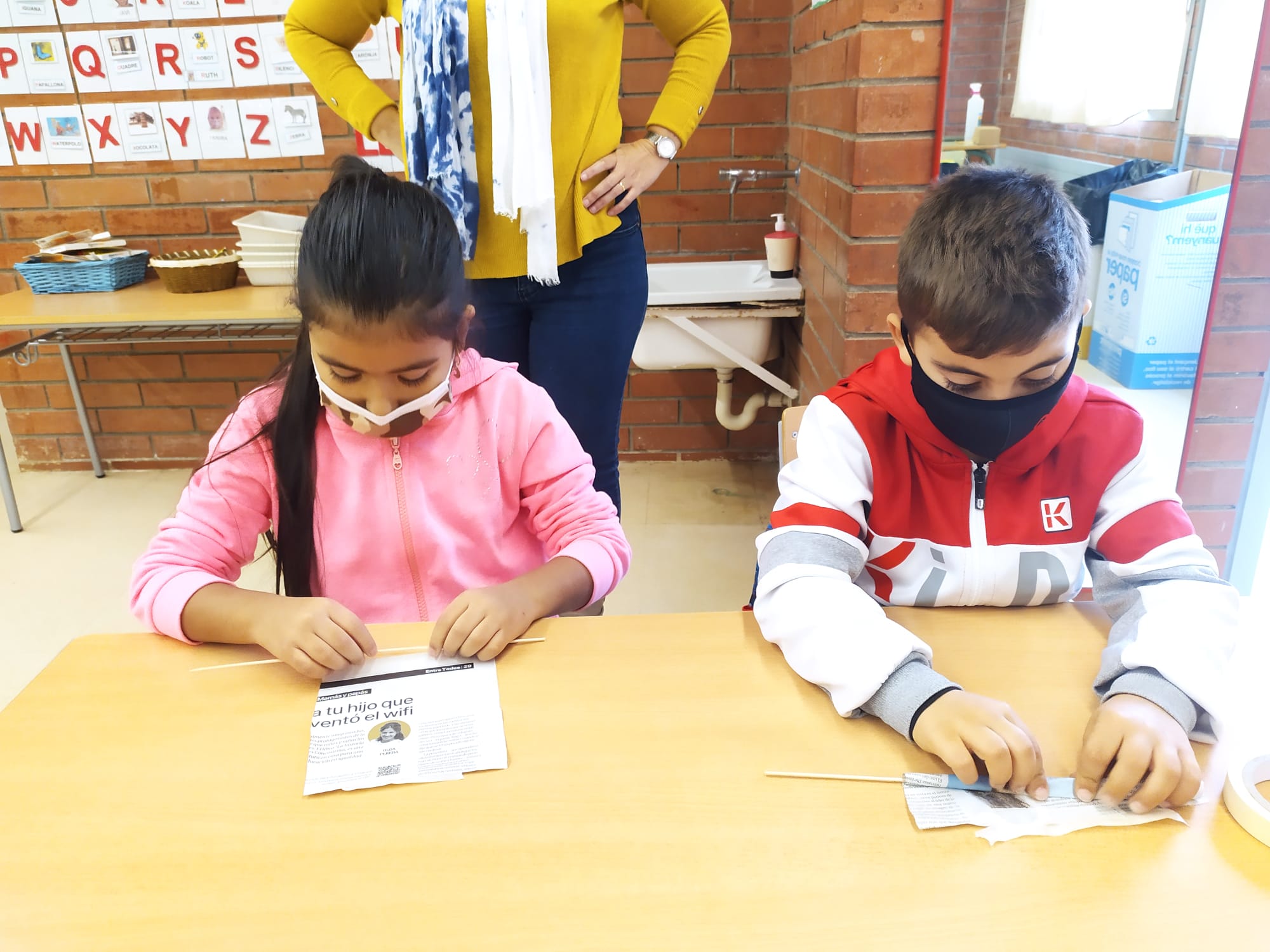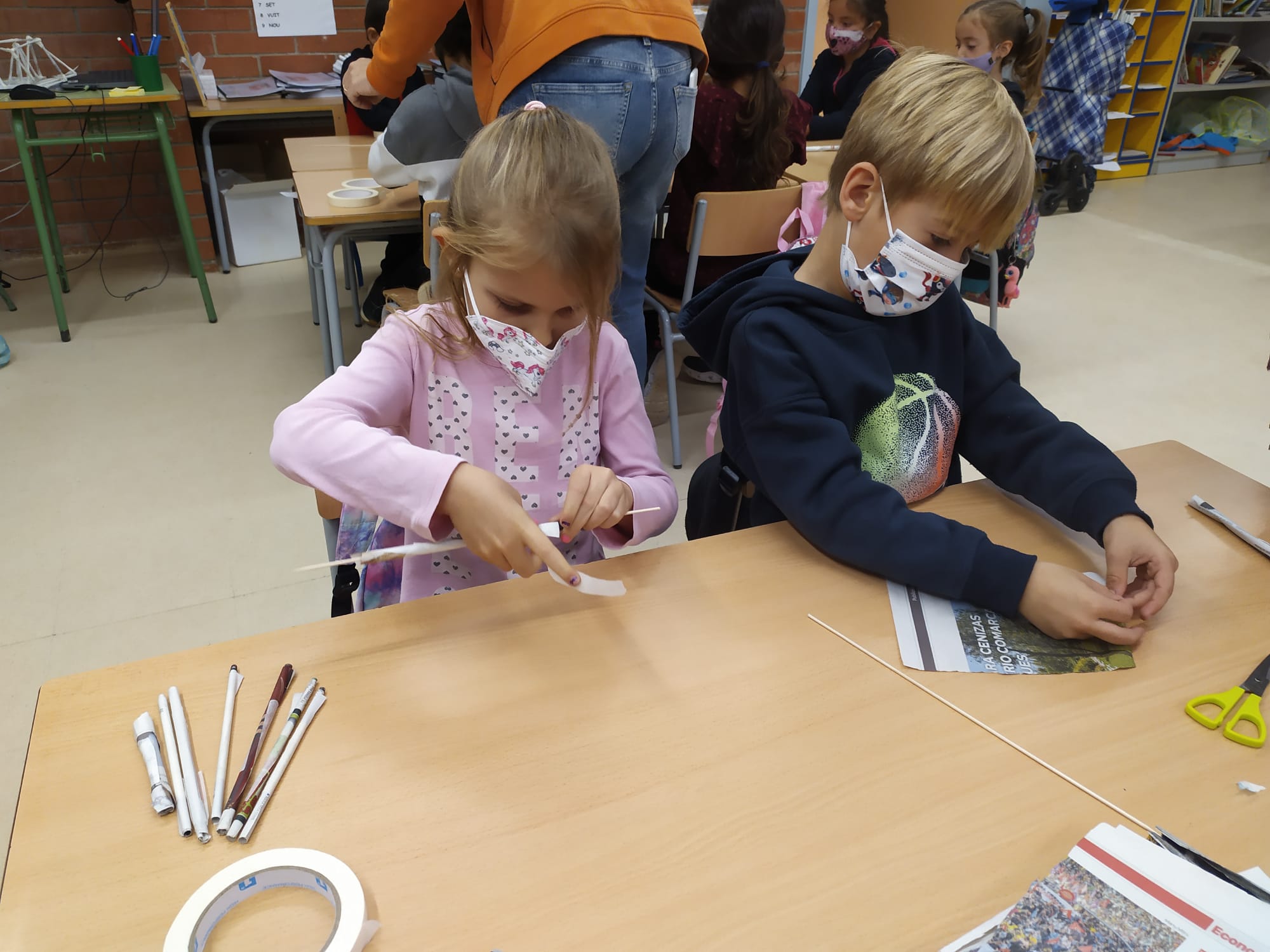 Els infants de PRIMER hem conegut, manipulat i creat a través d’un taller de Geodèsia. Nosaltres hem estat el matí creant les nostres pròpies representacions a partir de papers de diari, cinta adhesiva i un pal de fusta.