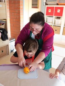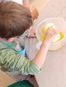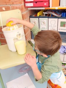 ALGUNS DELS ALUMNES D’I3, D’I4 I D’I5 QUE VENEN A TREBALLAR AL SIEI D’INFANTIL HAN FET LA SEVA PRIMERA RECEPTA AL TALLER DE CUINA: UN SUC DE TARONJA. DURANT L’ACTIVITAT HAN POGUT OBSERVAR, MANIPULAR, OLORAR I EXPERIMENTAR AMB ELS INGREDIENTS, SEGUINT TOTS ELS PASSOS DEL PROCÉS.