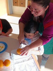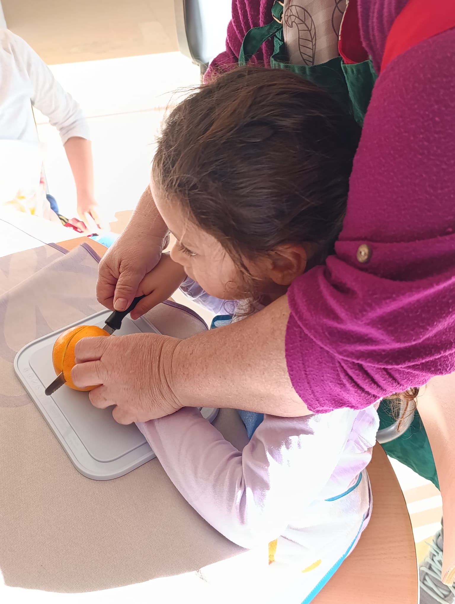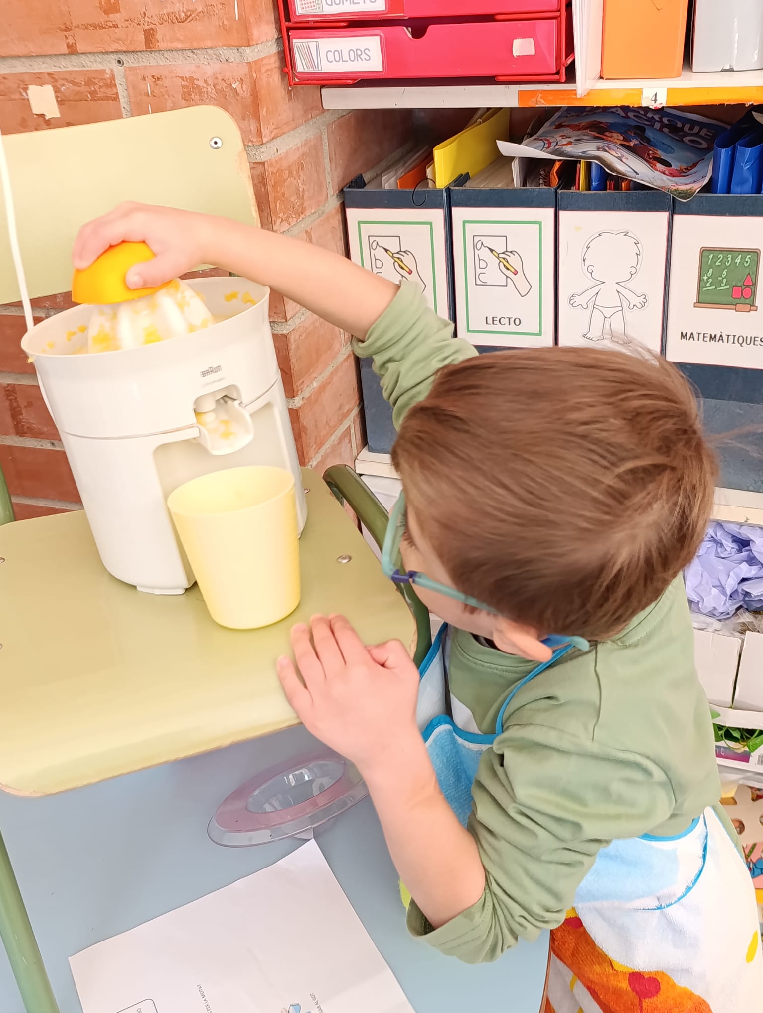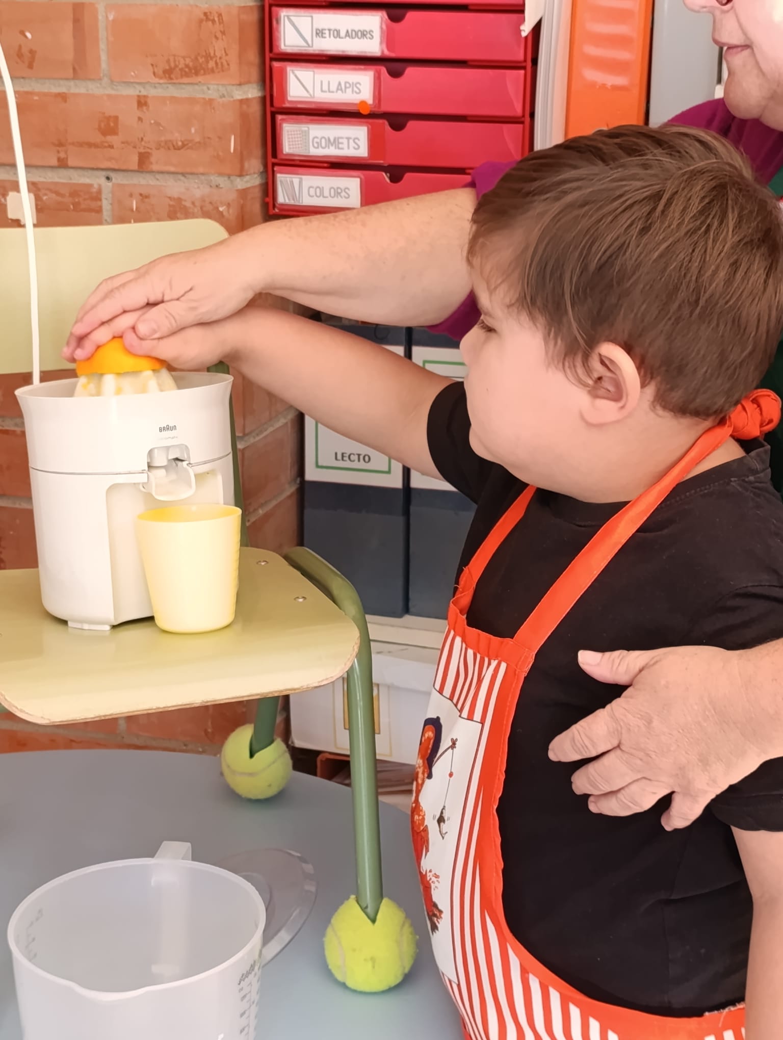 ALGUNS DELS ALUMNES D’I3, D’I4 I D’I5 QUE VENEN A TREBALLAR AL SIEI D’INFANTIL HAN FET LA SEVA PRIMERA RECEPTA AL TALLER DE CUINA: UN SUC DE TARONJA. DURANT L’ACTIVITAT HAN POGUT OBSERVAR, MANIPULAR, OLORAR I EXPERIMENTAR AMB ELS INGREDIENTS, SEGUINT TOTS ELS PASSOS DEL PROCÉS.