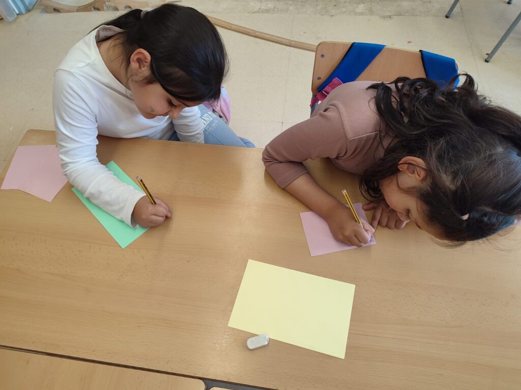 Cada infant pot escriure una nota o dibuix per a un company o companya, expressant paraules boniques, agraïments o simplement desitjant un bon dia.