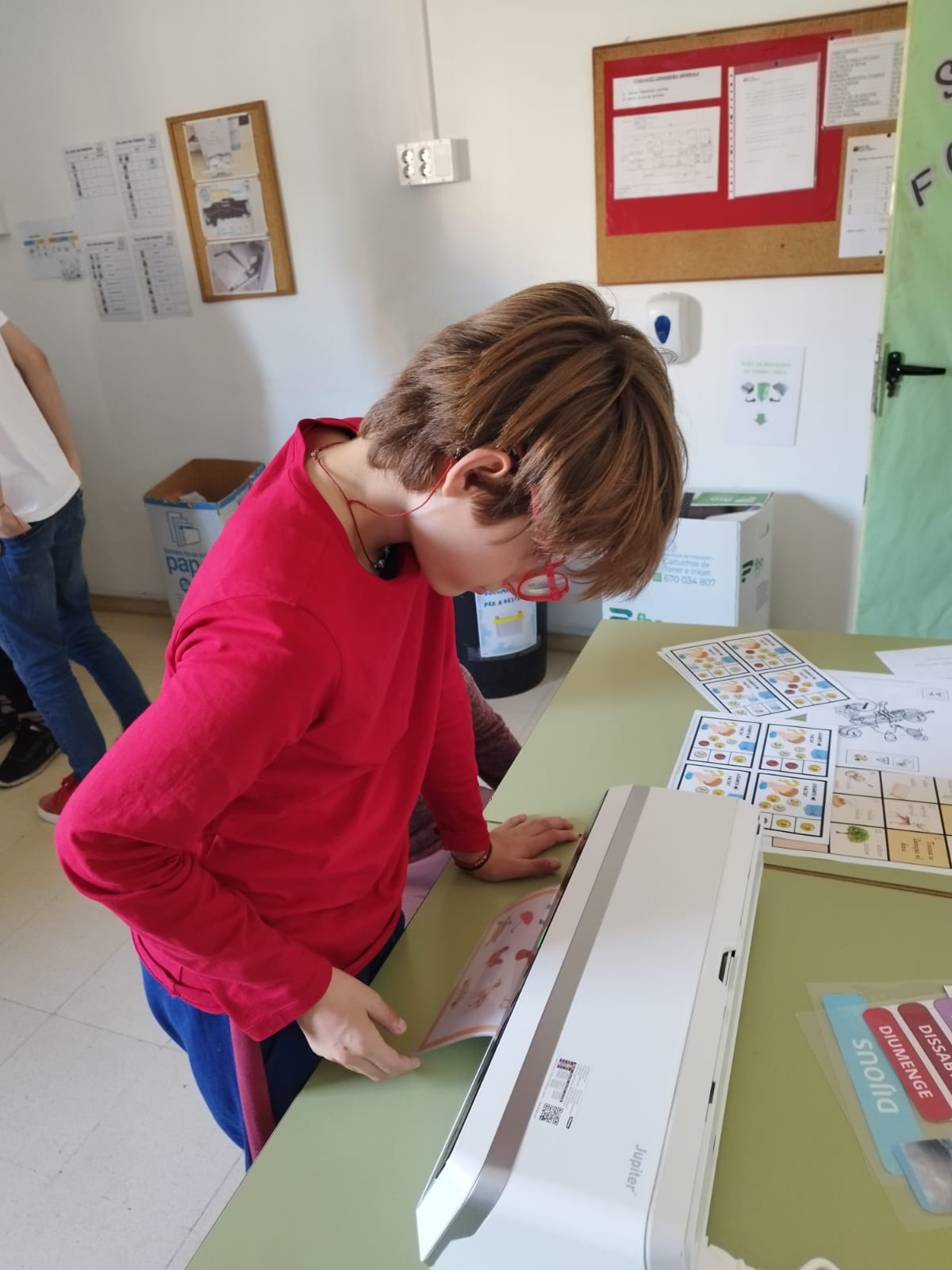 🖨️Taller de plastificar: Els i les alumnes aprenen a utilitzar la plastificadora amb seguretat i precisió. Abans de començar, recorren les diferents aules del centre per preguntar al professorat si necessita plastificar algun material.