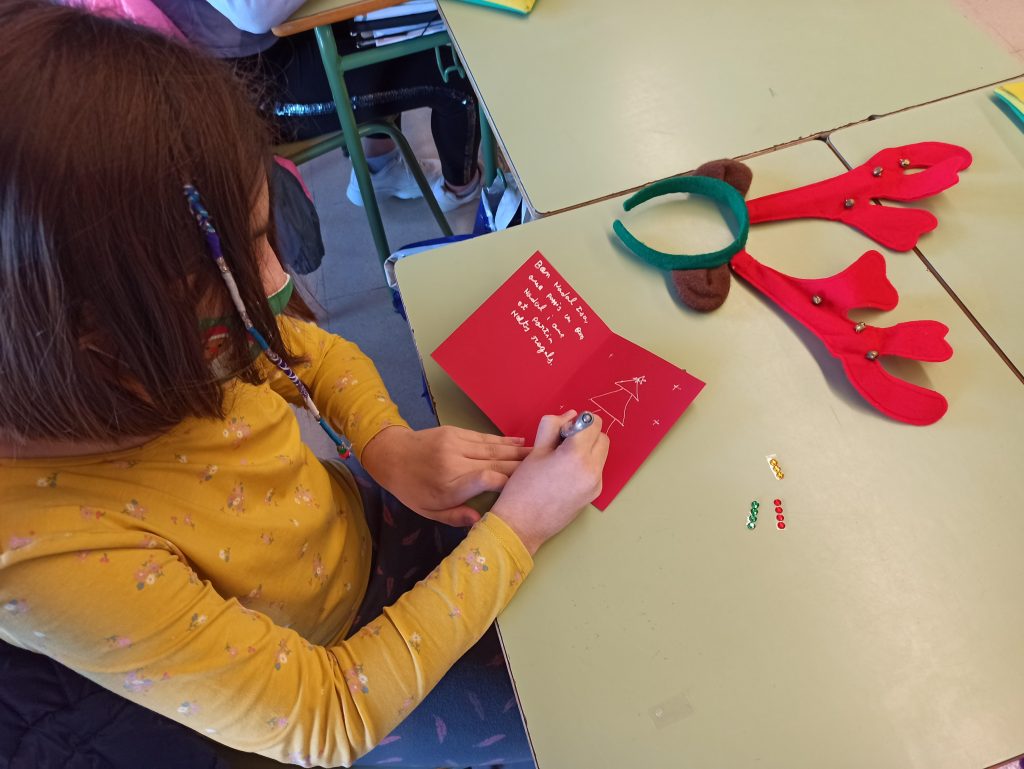 Avui ha estat un dia especial, hem realitzat una postal de Nadal per regalar a una persona estimada, hem cantat una Nadala als nostres filllols i filloles i hem fet l’Amic/ga Invisible. Ha estat un matí d’allò més divertit. Ens trobarem molt a faltar aquestes vacances, però aprofitarem per gaudir en família i agafar forces per al segon trimestre.