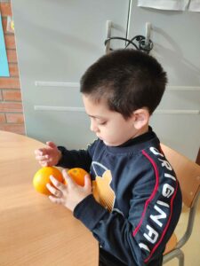 Durant el taller, els nens i nenes han pogut tocar, olorar i manipular la fruita, descobrint de primera mà tot el procés per aconseguir un bon suc de taronja. Amb l’ajuda de les mestres, han après a pelar, tallar i esprémer les taronges, creant el seu propi suc fresc i natural per esmorzar.