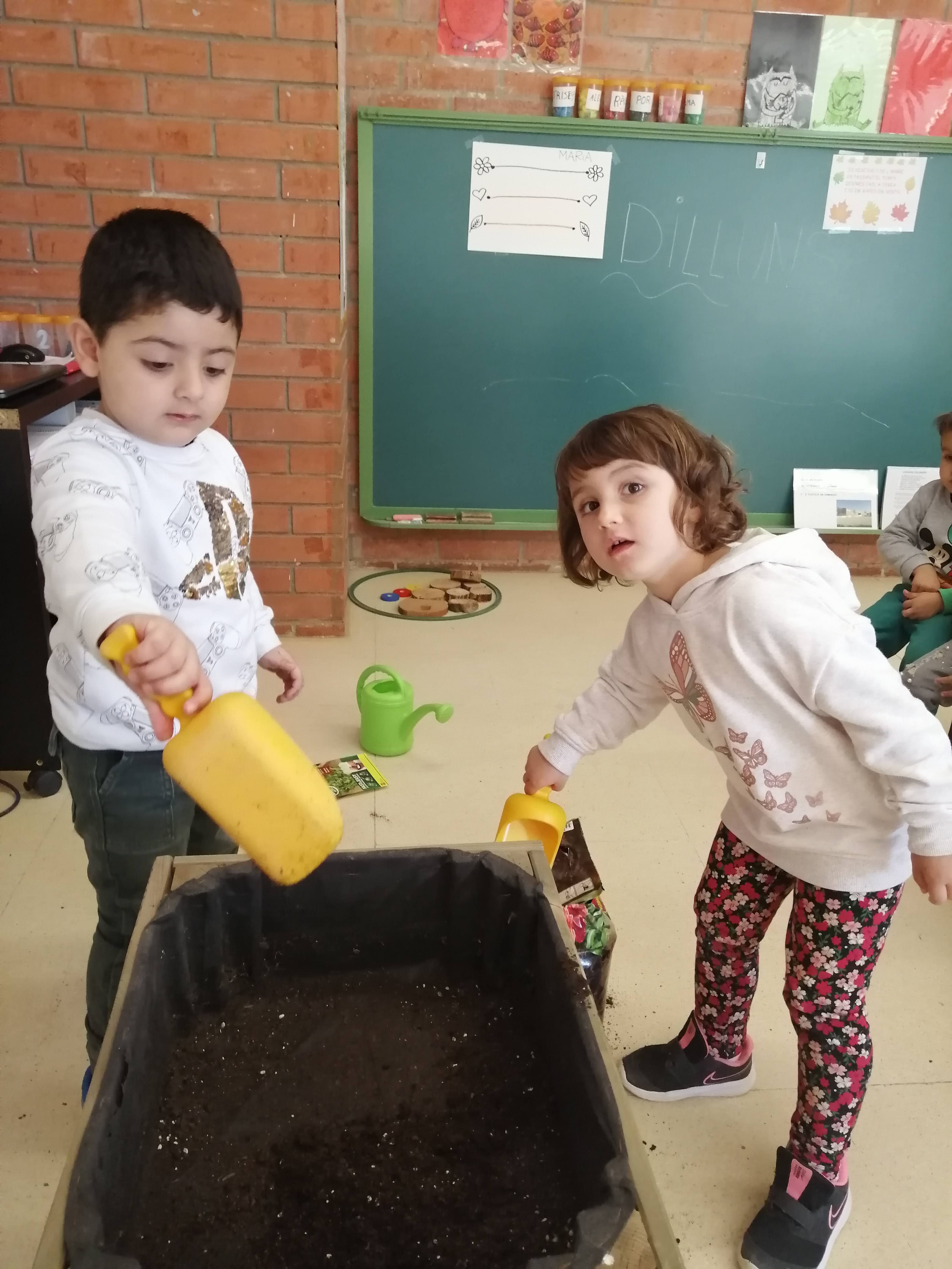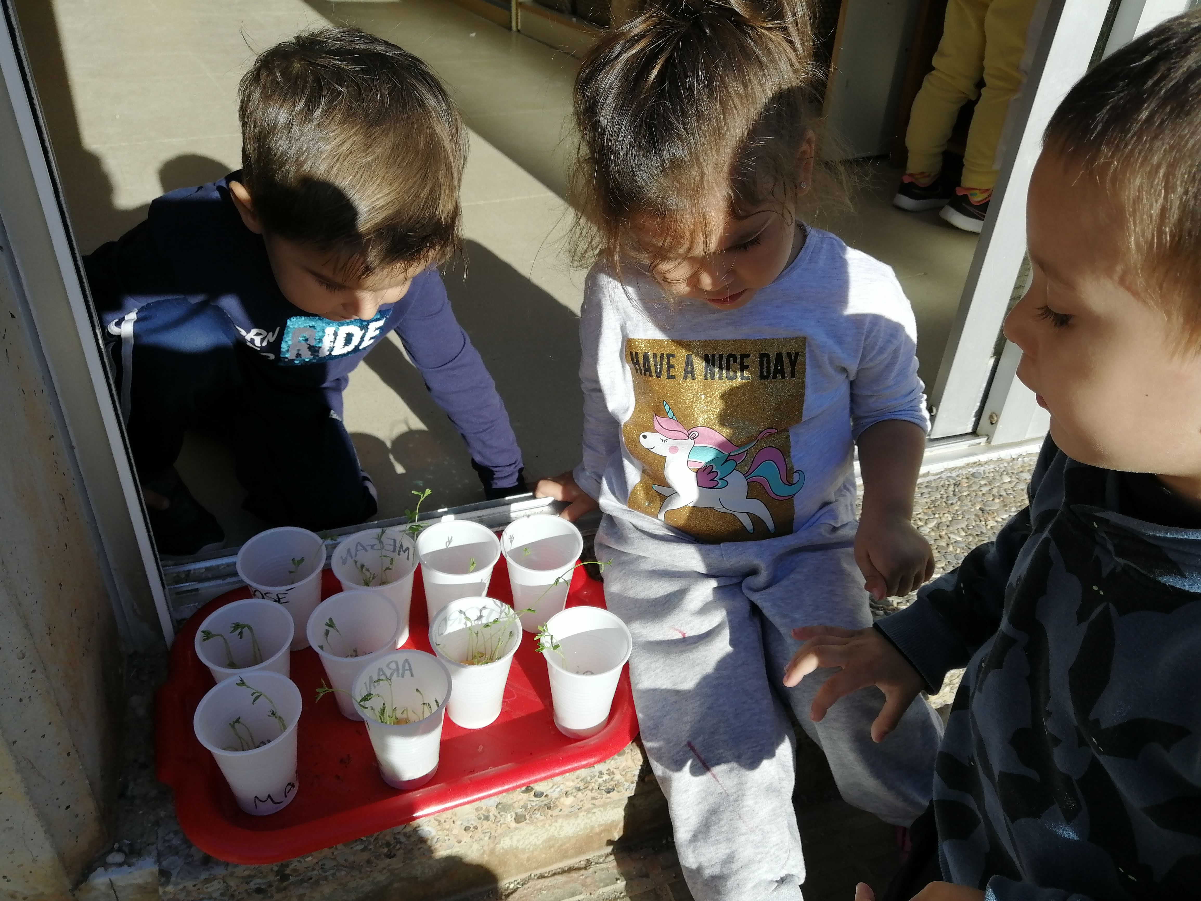 Els infants d’I3 gaudeixen molt de les sessions d’Hort.Cuidem de les nostres plantes a classe i hem plantat llenties en cotó. Hem començat també a preparar l’hort i hem plantat col, bledes i espinacs. El nostre conserge José Luis ens ha ajudat molt!!! Mireu tot el que estem aprenent!
