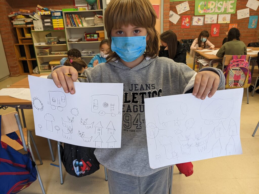 A l’aula de segon hem fet una pràctica molt divertida. No ens adonem, però  sempre fem servir una mà més que l’altra. Avui a la classe de plàstica hem dibuixat seguint unes consignes,  però amb la mà que mai dibuixem. Ha estat una experiència que ens ha fet patir al principi; però després quan ja portàvem una estona dibuixant amb l’altra mà cada vegada ens sortia millor. Aquí en tenim algunes fotos.