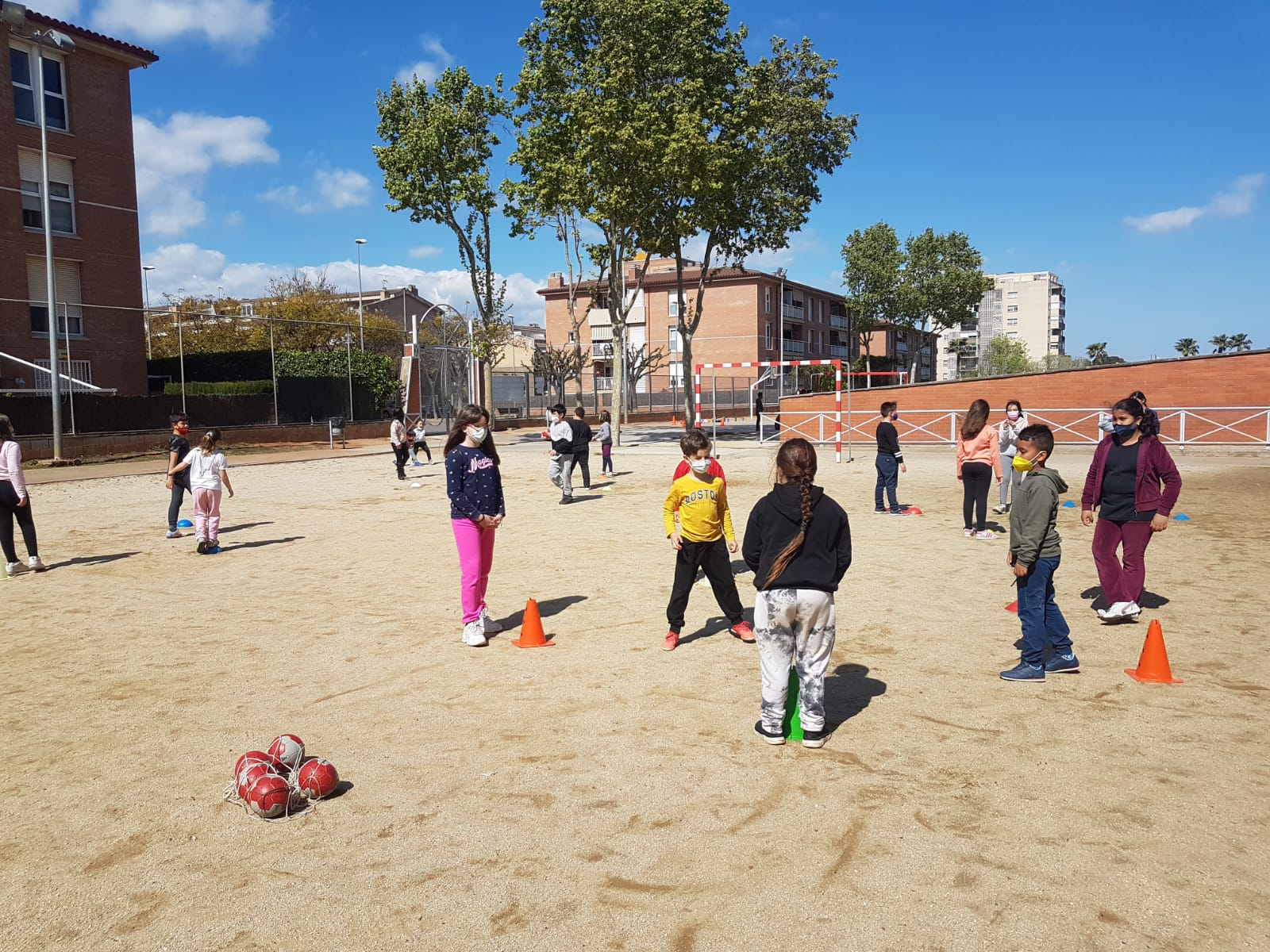 Els i les alumnes de tercer continuen iniciant-se en l’handbol. A través de diferents jocs tractem de millorar la capacitat d’orientar-nos en l’espai respecte a nosaltres mateixos i els altres, la recepció, la passada, a més de la punteria en el llançament.