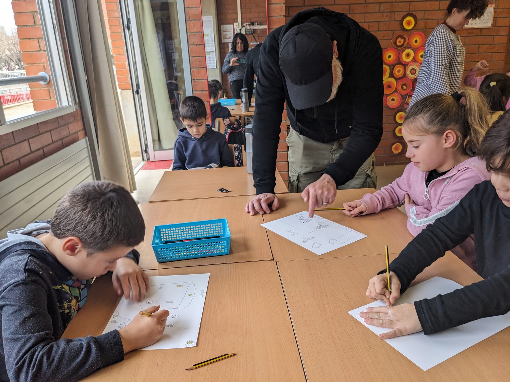 La classe de segon ha apostat per potenciar la llengua anglesa en altres àrees; per aquest motiu hem començat a fer plàstica en anglès amb la col·laboració amb l’Ateneu de les Arts. Comptem amb l’ajut del Bob, un pintor anglès que li encanta ensenyar als infants.