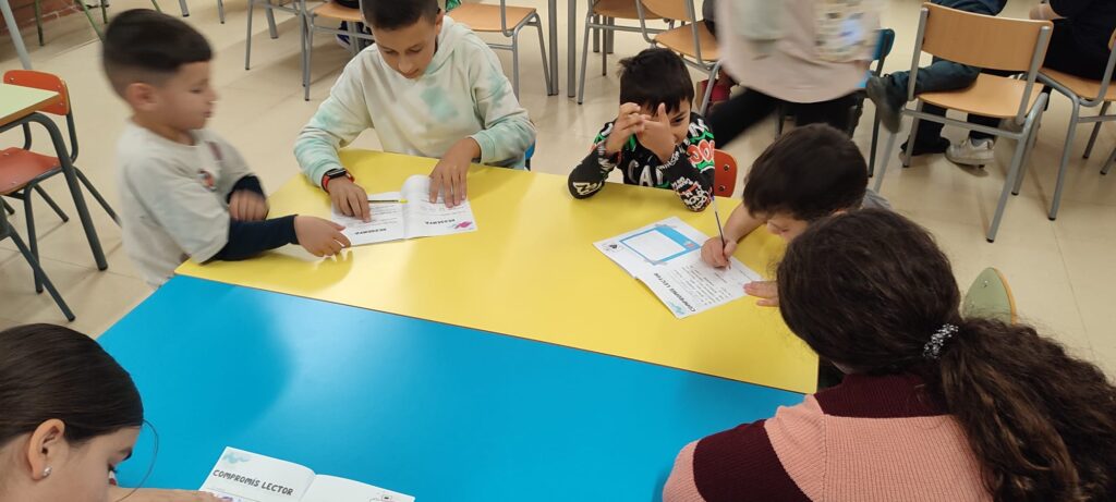 Es tracta d’una activitat cooperativa que consisteix a compartir un espai en el qual els nens i les nenes més grans de l’escola es converteixen en padrins lectors dels nens i nenes de primer.