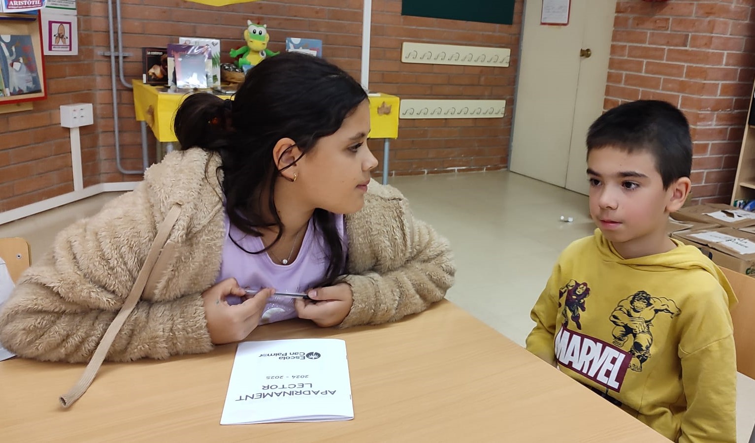 Es tracta d’una activitat cooperativa que consisteix a compartir un espai en el qual els nens i les nenes més grans de l’escola es converteixen en padrins lectors dels nens i nenes de primer.