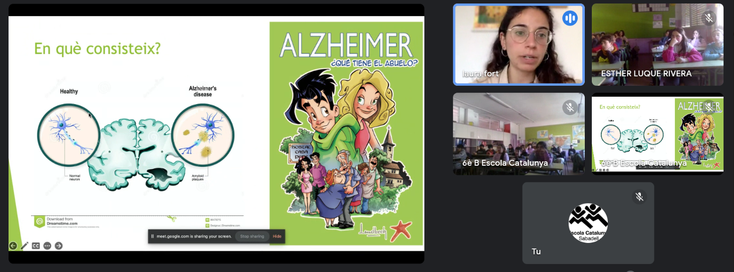 Amb motiu de la celebració del dia de la dona científica demà dissabte, obrim a l’escola un període de temps on l’alumnat de Primària farà activitats relacionades amb les dones i la ciència, dins del marc de la coeducació. Avui hem inaugurat les activitats, amb una xerrada online dirigida a l’alumnat de 6è, emmarcada dins del programa #100tífiques. Durant les següents setmanes, els diferents grups de l’escola faran una activitat relacionada amb aquests temes. La sessió d’avui ha estat molt interessant, hem conegut a la Laura, una persona científica que actualment treballa en un projecte d’investigació sobre l’Alzheimer: