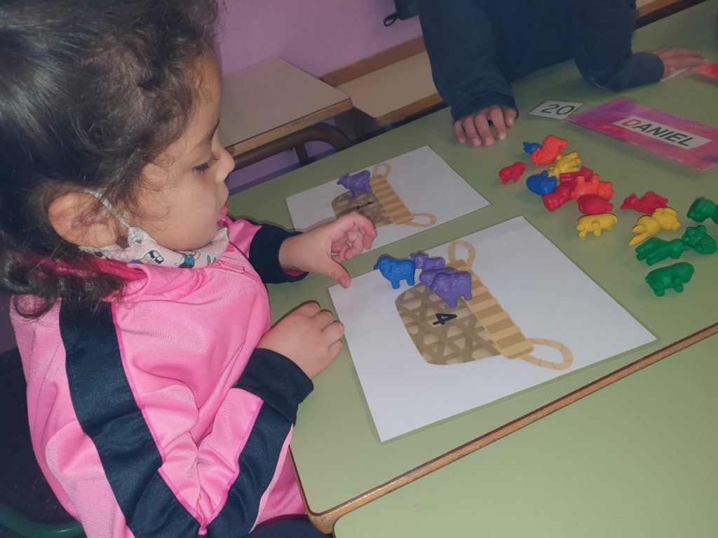 Durant els racons matemàtics, els infants van aplicant les habilitats i coneixements adquirits posant a prova les seves capacitats de raonament lògic, orientació espacial i numeració.