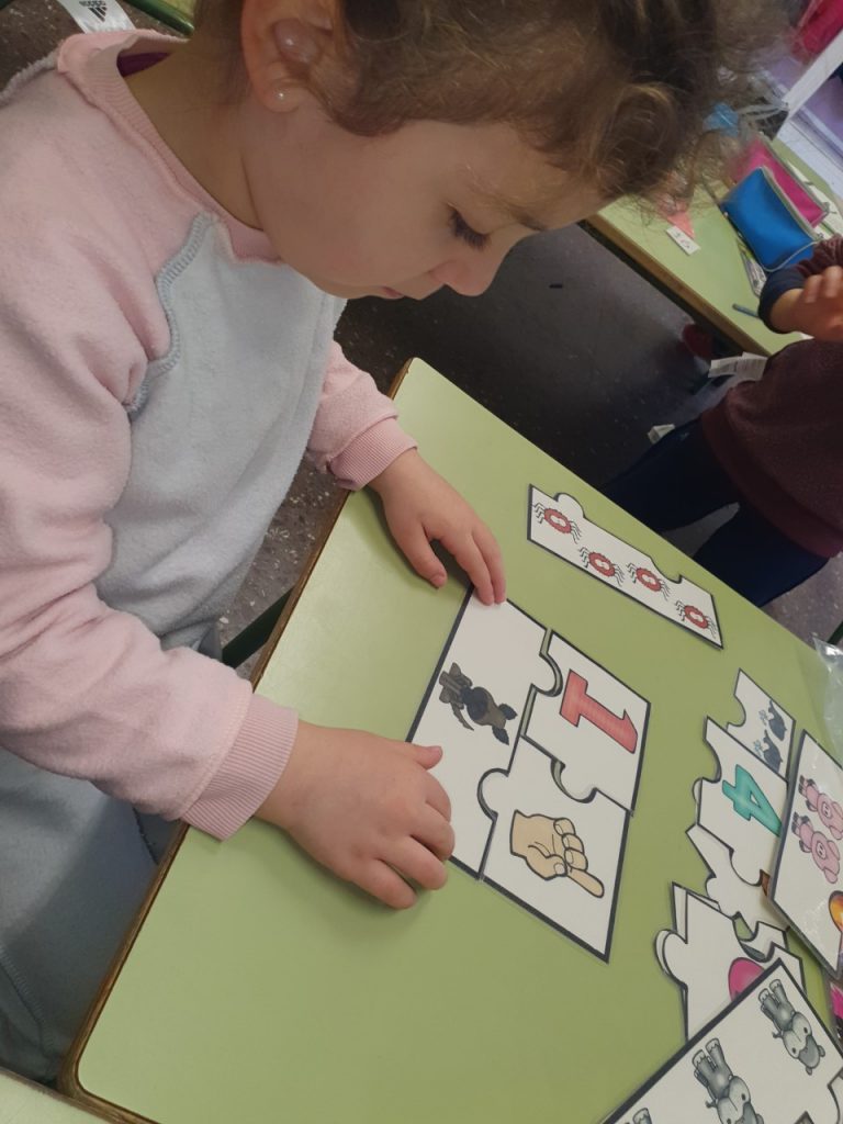 En aquesta nova mecànica de treballar, els alumnes es troben amb un joc diferent (fet amb materials reciclats o creat per nosaltres) en cadascuna de les taules per les que van rotant. D’aquesta manera aconseguim fomentar la seva autonomia a l’hora de gestionar les tasques.