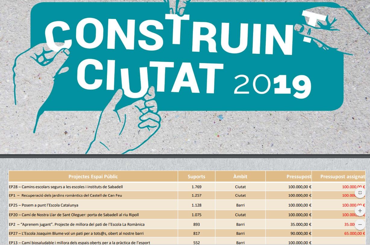 Gràcies a aquest projecte, hem pogut veure com les entitats de la nostra ciutat volen créixer i millorar a fi i efecte de conviure millor a la nostra ciutat. Des d’aquí, volem felicitar a totes les propostes que podran portar a terme el seu objectiu.