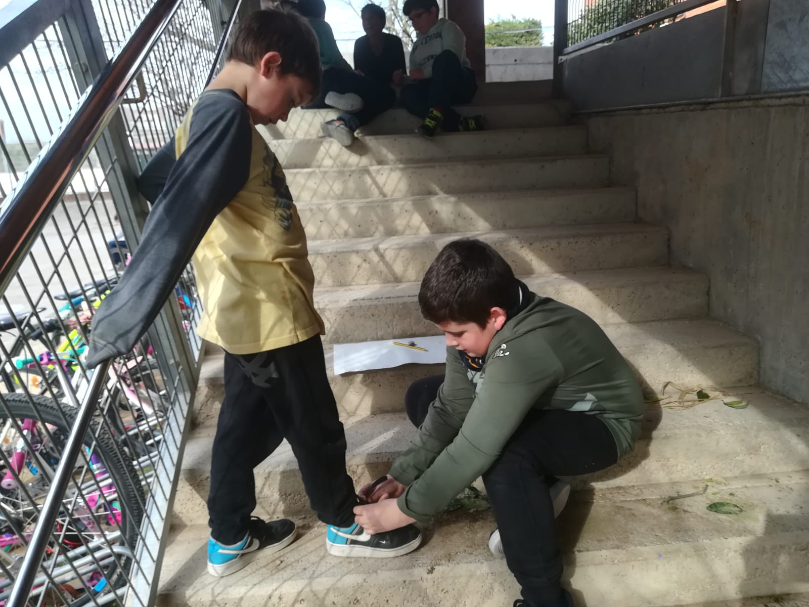 Aprofitem quan fa bon temps per fer les lectures fora i treballar sobre animals, plantes i ocells. A més, amb padrins de lectura s’aprèn fins i tot a  fer-se els llaços de les sabates!