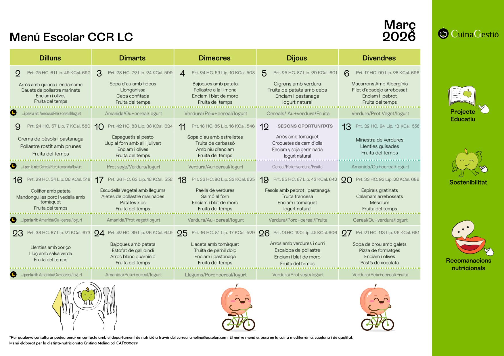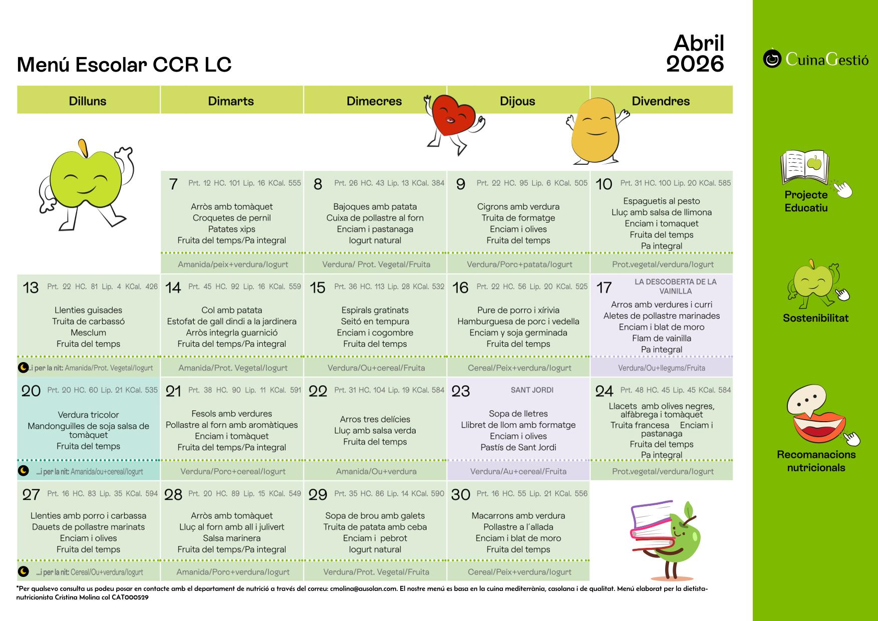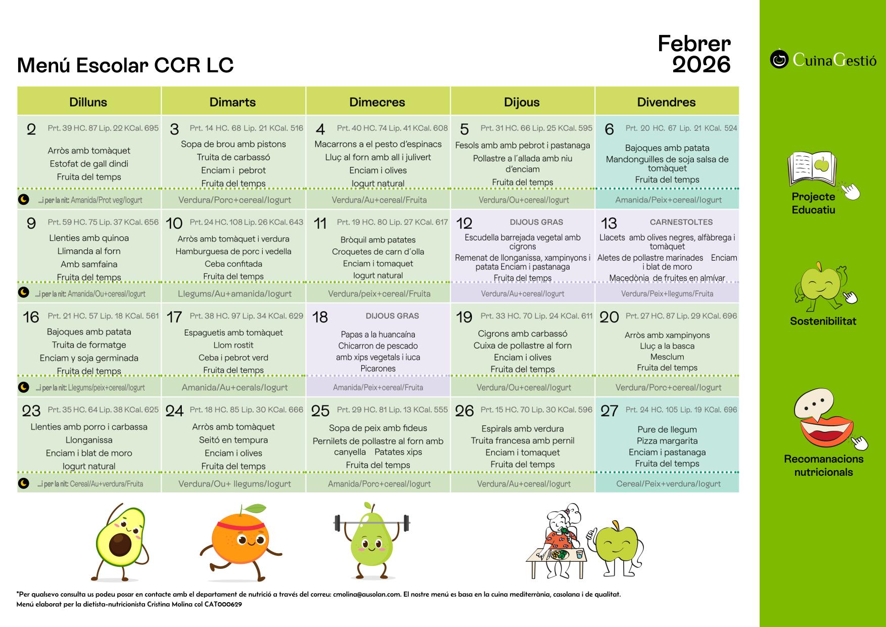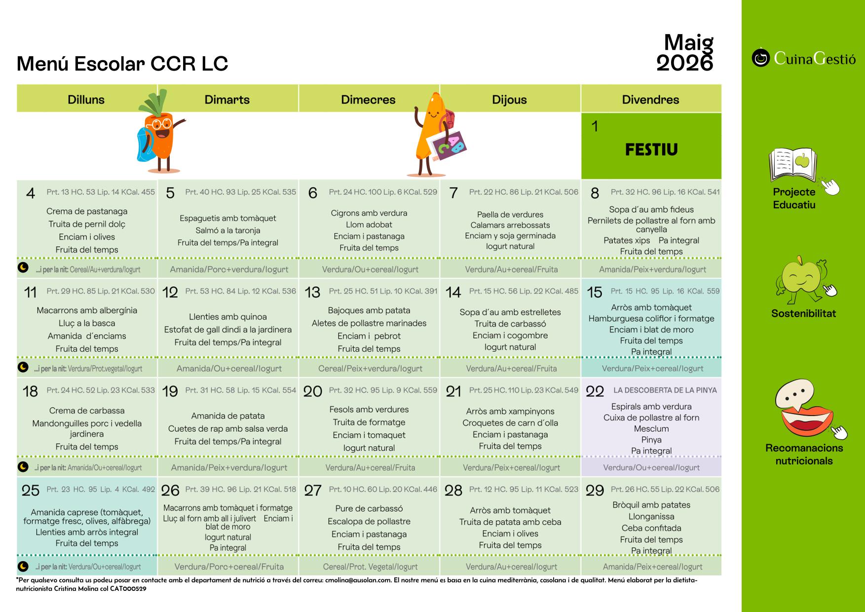 Menú mensual i proposta de sopar