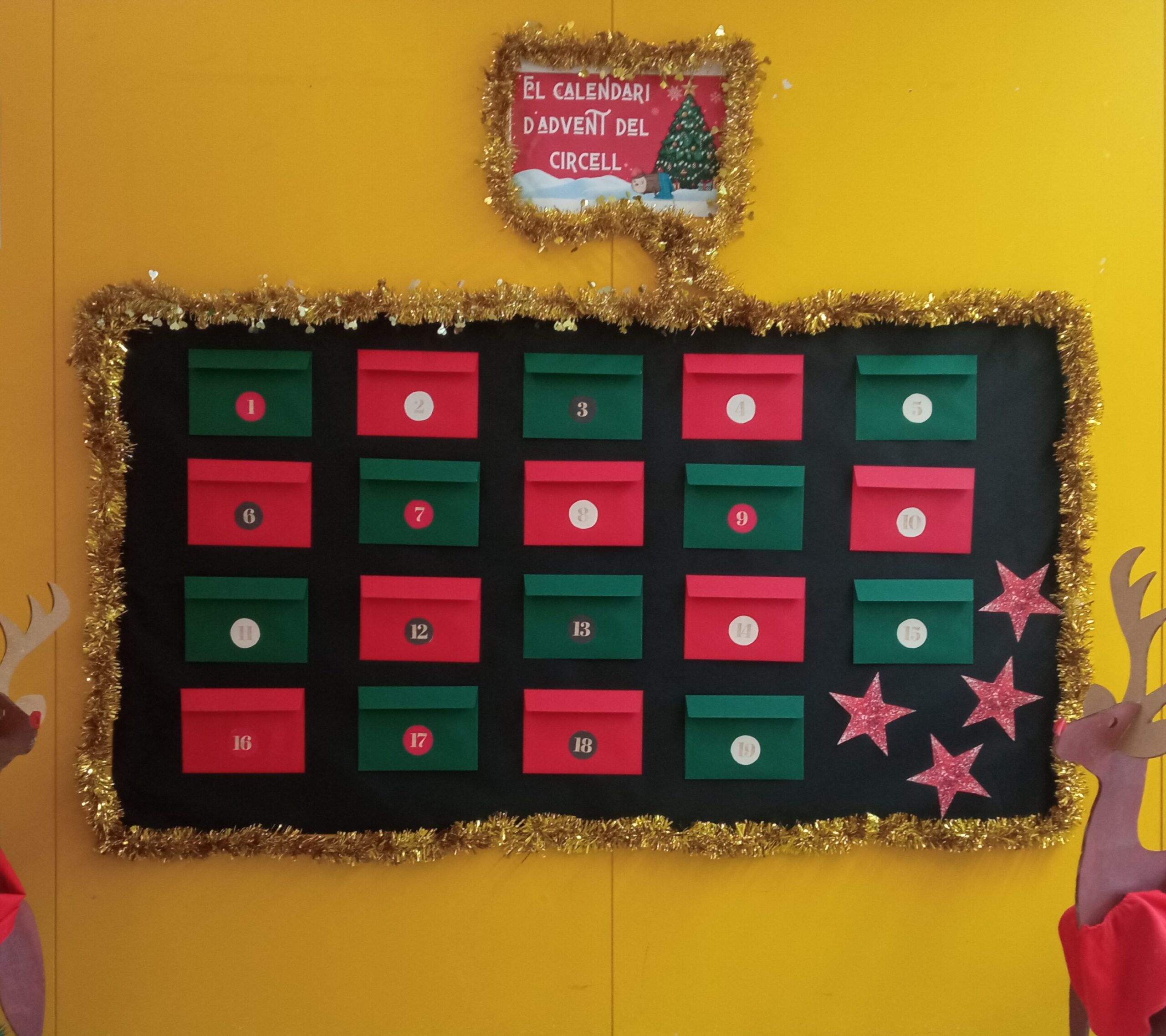 Els docents hem preparat jocs, manualitats, activitats i molt més perquè tot l’alumnat de l’escola hi participi. Cada dia les diferents aules aniran passant pel calendari a obrir el sobre per veure què toca fer aquell dia.