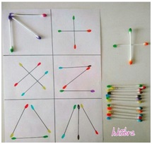 Fer dibuixos amb canyetes, bastonets d’oïdes, pals de polo…, etc. seguint un model.