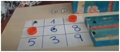 Bingo de números. Cada persona que juga ha de tenir un cartonet amb números de l’1 al 9 (cada cartonet ha de tenir una combinació diferent de números). Cada jugador haurà d’escollir quins dos números taparà abans de començar la partida (aquests dos números tapats amb un tap d’ampolla no jugaran la partida).