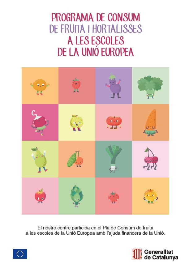 DINS EL NOSTRE PROJECTE FEM SALUT A L’ESCOLA, ENGUANY TORNEM A PARTICIPAR EN EL PROGRAMA ESCOLAR DE FRUITA QUE ENS OFEREIX EL DEPARTAMENT D’AGRICULTURA RAMADERIA I PESCA DE LA GENERALITAT DE CATALUNYA AMB LA COL·LABORACIÓ D’AFRUCAT (Associació Empresarial de Fruita de Catalunya)
