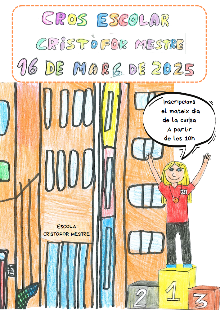 L’Escola Cristòfor Mestre i l’Associació de Famílies d’Alumnes, amb la col·laboració del Consell Esportiu de l’Alt Penedès i l’Ajuntament de Vilafranca del Penedès organitzem el 7è Cros Escolar de l’escola.