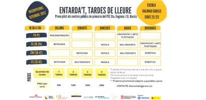 Les activitats extraescolars de la Coordinadora d’AFAS sortiran l’última setmana de setembre. Aquestes estan en un tríptic de color groc i es faran les inscripcions del 30 de setembre al 4 d’octubre. Per poder demanar la beca de les activitats hi ha les inscripcions el dia 1 d’octubre de 9h a 12h i de 15:00h a 16:30h.