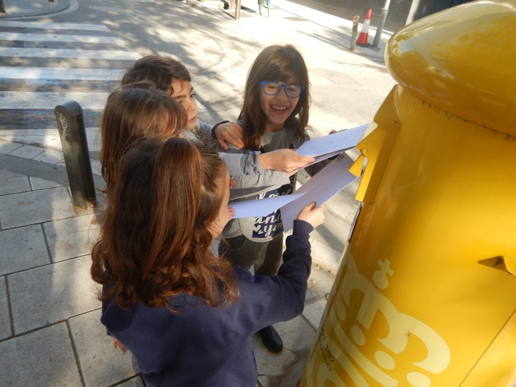 Durant el primer trimestre els alumnes de primer han estat escrivint cartes. Han escrit una carta a les elfes de la biblioteca, als amics i amigues de la classe, i en arribar el Nadal, la carta als Reis Mags d’Orient i una postal de felicitació. El passat dimecres, van fer una sortida pel barri d’Almeda per anar a tirar les cartes dels Reis Mags a la bústia del Mag Maginet i les postals a la bústia de correus perquè, durant els propers dies, arribin a les cases de les seves famílies… Amb aquesta activitat, a més a més de treballar la llengua escrita, van poder descobrir la tradició d’enviar postals de Nadal per correu ordinari.