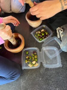 També han preparat una recepta d’olives macerades i, per acabar, han fet un tast deliciós del mateix oli del trull sobre una bona llesca de pa. Una experiència plena d’aprenentatge, tradició i molt bon gust!
