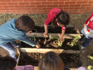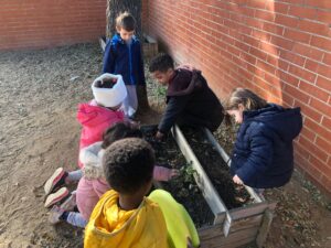 Aquests dies els nens i nenes d’infantil ens hem anat apropant a les jardineres que tenim al nostre pati per plantar enciams i faves. Primer de tot, hem tret les males herbes amb l’ajuda de les mestres, hem preparat la terra fent un forat i hem afegit els planters d’enciams i faves. Els hem cobert amb més terra i els hem regat amb aigua.