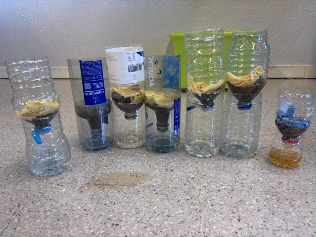 Els infants han anat passant per diferents estacions, observant, comparant i comprovant com canviava l’aigua en cada fase del filtre. Treball cooperatiu, pensament científic i moltes descobertes en directe!