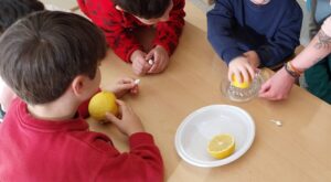 Els alumnes d’infantil continuen descobrint l’entorn natural que ens envolta a la nostra escola. Han observat que tenim un arbre fruiter: un llimoner i enciams que ja es poden collir de l’hort. Els han observat per dins i per fora, els han manipulat i olorat, han espremut les llimones… Ha estat tota una experiència que els més petits del centre han gaudit molt.