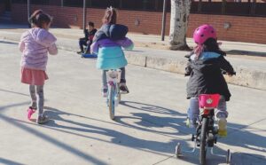 Els infants d’Infantil han realitzat circuits al pati de l’escola amb bicicletes i patinets que han portat de casa per reflexionar i fomentar l’ús de vehicles no contaminants amb una mobilitat més sostenible.
