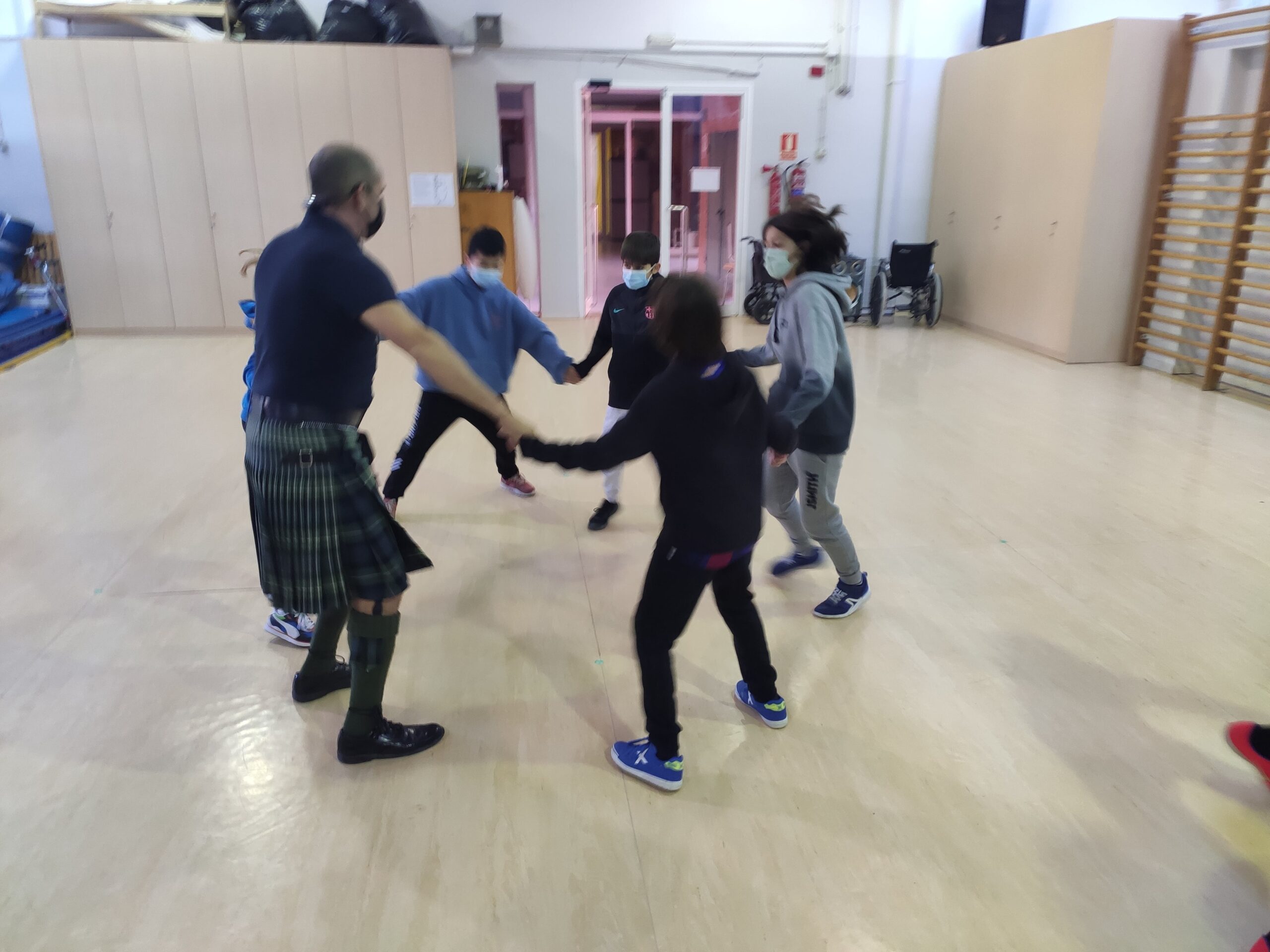 Va venir a veure’ns el David Vivanco i ens va ensenyar que els escocesos fan danses tradicionals en els dies més especials per a ells, com aniversaris, casaments, trobades familiars…
