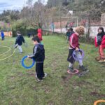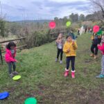 A la tarda, com la pluja ens ha donat treva, els infants de P5 han pogut apropar-se a la granja, conèixer particularitats dels seus animals, donar-los de menjar i tocar-los o acaronar-los. Mentrestant, els infants de segon han anat a l’hort per descobrir les tasques del pagès i han decorat una torreta per plantar-hi plantes aromàtiques. Tots dos grups han rememorat el projecte de les arts escèniques jugant i gaudint amb diferents materials per a fer malabars.