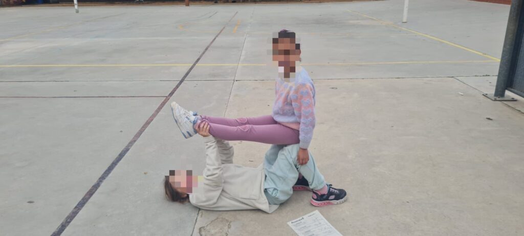 A les sessions d’educació física aprenem amb el nostre cos i, a través d’aquest, ens coneixem a nosaltres mateixos i mateixes. Dia rere dia, fem activitats diverses ja sigui en moviment com posant en pràctica el nostre equilibri de manera acrobàtica com en aquesta sessió d’acroesport per parelles. L’alumnat va realitzar diferents construccions amb el cos sincronitzant-se amb la parella i posant en pràctica el treball cooperatiu.