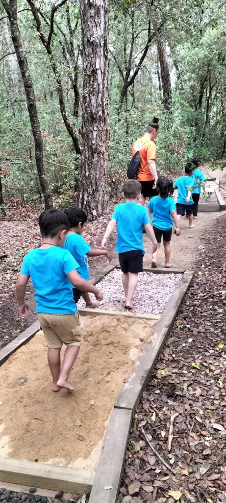 Hola, famílies, Les nenes i els nens d’infantil i cicle inicial, per acomiadar aquest curs 2022-2023, vam anar al bosc. Primer, vam gaudir del viatge amb autocar fins a Dosrius. Un cop allà, ens vam descalçar i vam fer un llarg recorregut sense sabates! Hem trepitjat un munt d’elements naturals com la fusta, sorra, pedres,