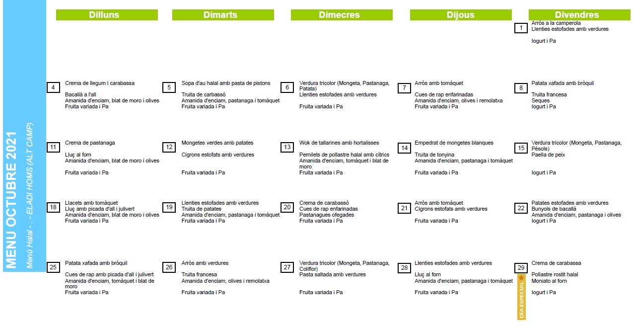 Menjador Eladi Homs: menús octubre Feu un comentari / Per admin / 1 d'octubre de 2021 / General Portada
