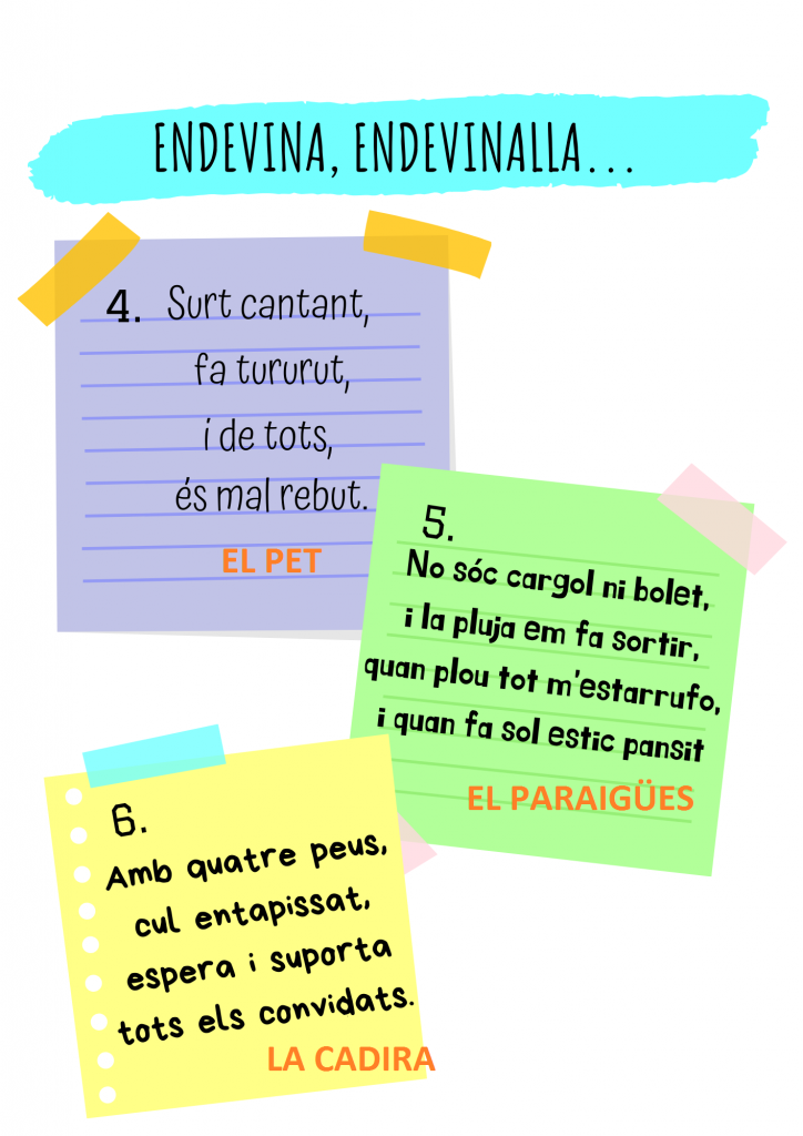 Endevinalles (solucions) Grup Inicial03/05/20 Endevina, endevinalla… Sabeu les solucions a les endevinalles que us vàrem proposar les setmanes anteriors? Comproveu-les. Feu clic sobre la imatge si la voleu ampliar.