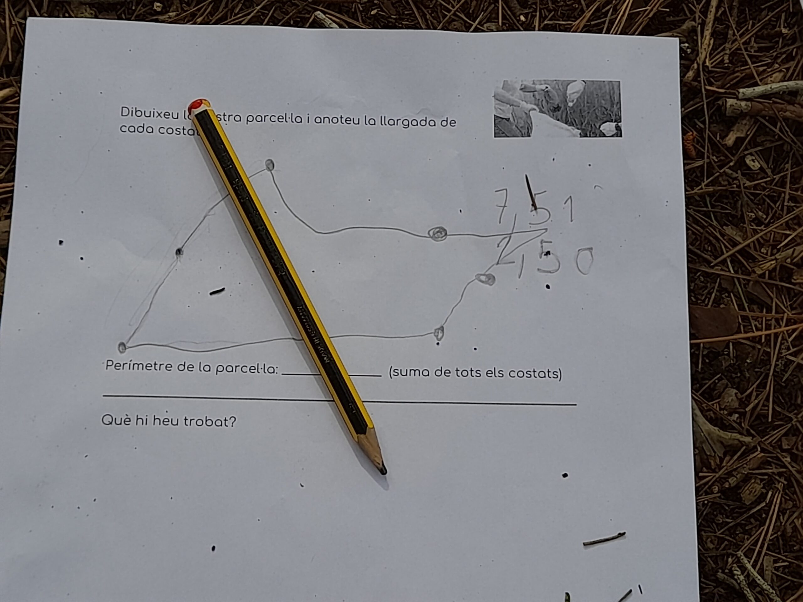 A mig camí, hem aprofitat per treballar un altre tipus de contorn: el perímetre i el seu càlcul. Finalment, ha arribat l’hora de la teca i de l’esbarjo. Hem tornat baldats, però ha valgut la pena. 😉