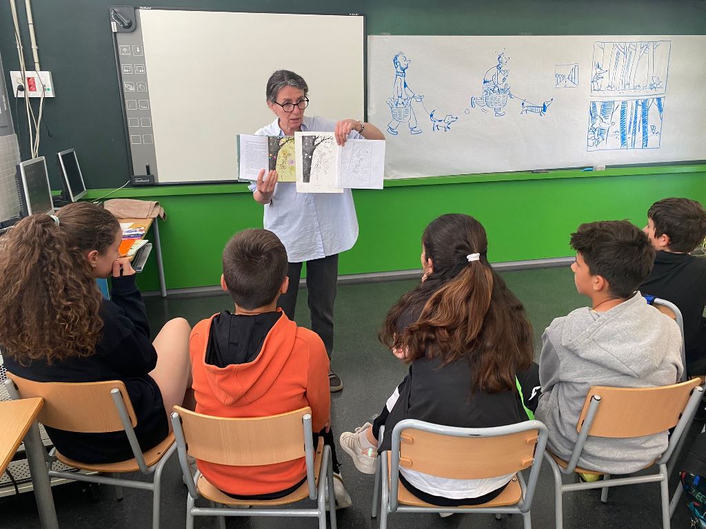 També ha explicat que fa els dibuixos en tres parts: L’esbós, el passa a tinta i després o ho pinta amb aquarel·les o ho passa a l’ordinador per a pintar. Li agrada molt fer servir tinta xina, perquè així quan pinta amb aquarel·les no s’escorre la tinta. Al final li hem fet unes preguntes i per acabar ens ha fet una dedicatòria en llibres que ha il·lustrat ella. Ha estat molt interessant i divertit, una experiència privilegiada.