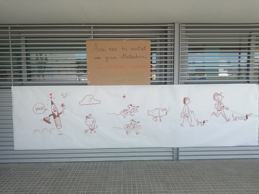 Avui ha vingut la Cristina Losantos a fer una xerrada a l’escola. Ens ha explicat com es fa un llibre i també ha explicat com ella fa els dibuixos. Ens ha comentat com va sorgir el seu estil de dibuix i també ens ha fet uns dibuixos (en una part de l’activitat ens ha fet dos dibuixos en la mateixa situació, però des d’una altra perspectiva i ens ha fet triar el més divertit).