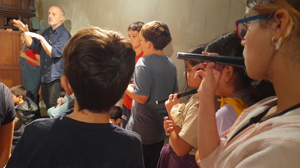 Después de ver la peli fueron a la iglesia Dels Trinitaris a tocar el flautín junto con el órgano de esta iglesia.