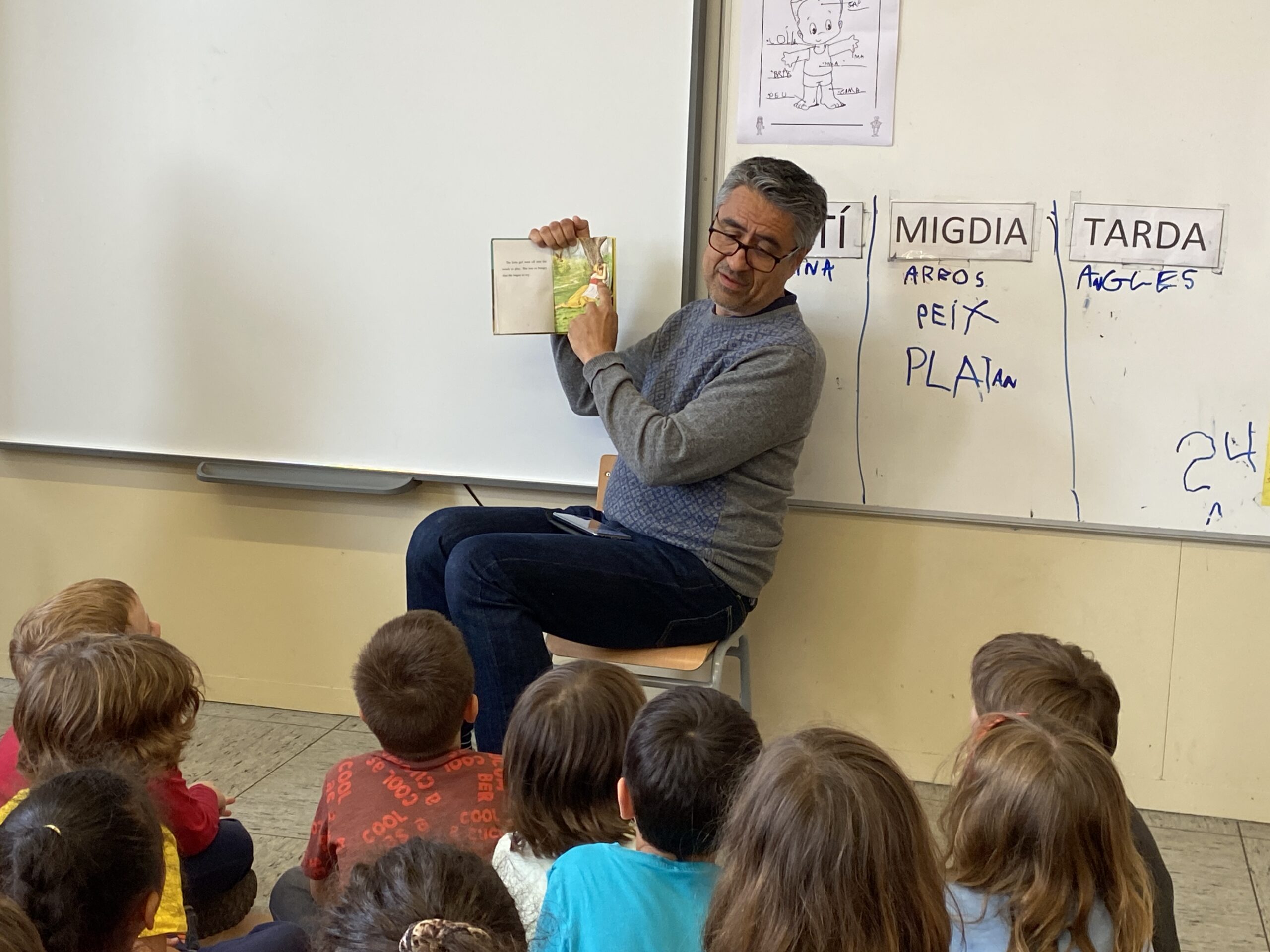 El dimecres a la tarda ens va visitar el pare del Leo de P5 a l’aula de l’Anet i l’Orenga.