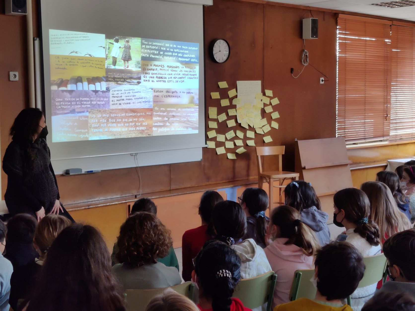 Dimecres, l’alumnat de 5è va assistir a una xerrada de la Neus Franquesa, neboda de l’Arcadi Oliveres. Va ser molt interessant, vam poder conèixer més a fons la vida d’aquest activista i els valors que defensava. Vam saber que l’Arcadi era economista, professor d’universitat i gran activista. Recorria pobles i ciutats removent consciències i promovent la defensa dels drets humans, la justícia social i la pau.