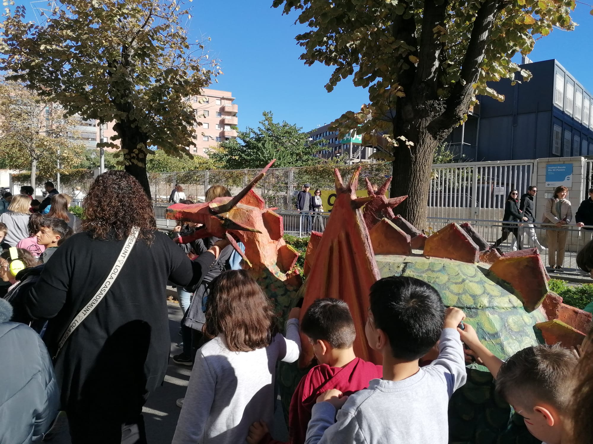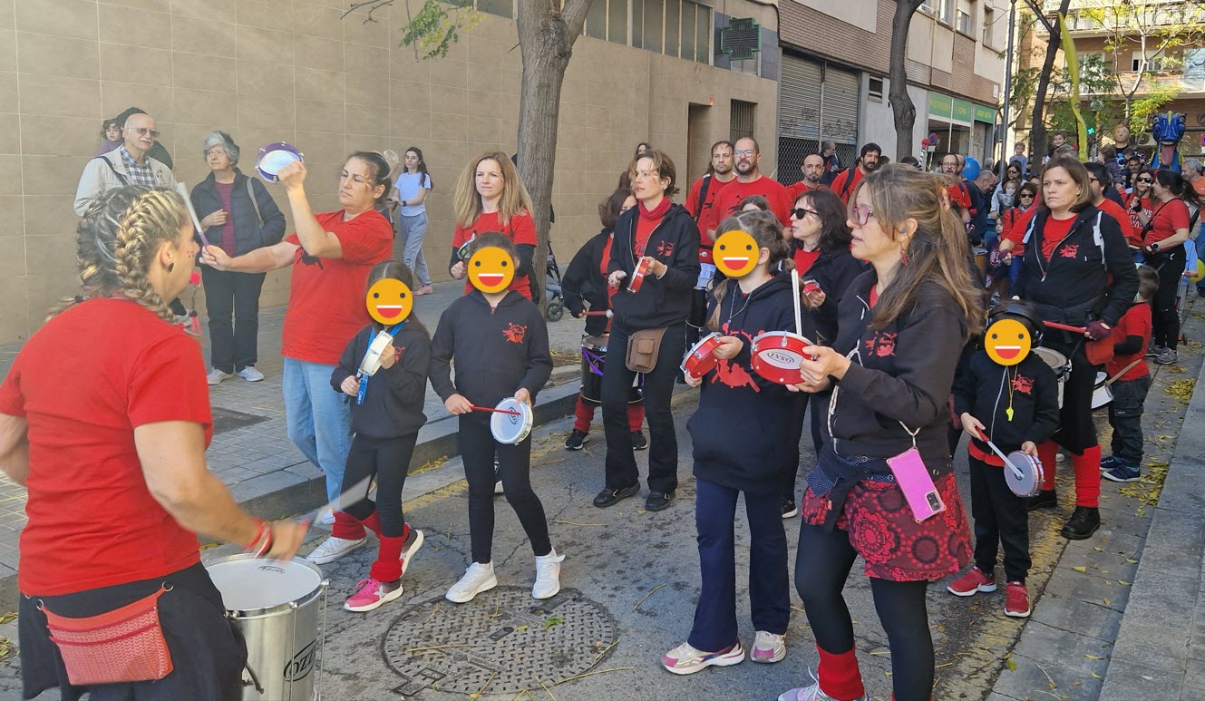 Tot i l’ambient bulliciós i la gran participació d’altres gegants, dracs, diables i escoles del barri, la nostra colla no va parar de tocar i ballar, contagiant l’alegria de la Festa Major a tothom que ens mirava.
